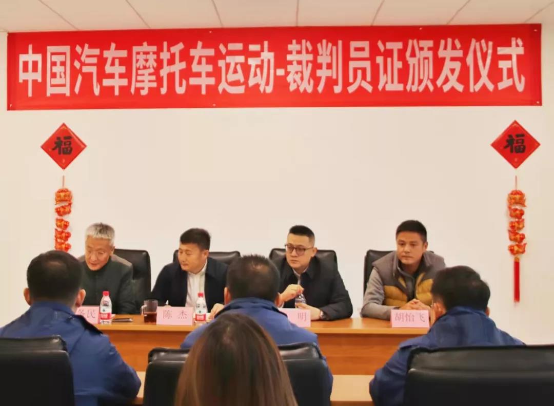 上午10點30分,“中國汽車摩托車運動-裁判員證頒發(fā)儀式”正式開始??偨?jīng)理陳杰在歡迎辭中首先對四川省汽摩運動協(xié)會主席曾明一行的到來表示感謝,由主席親自為新裁判頒發(fā)證書,這是對“新人”們最大的認可和鼓勵。